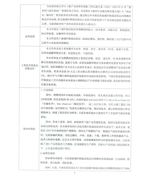 依据《国务院关于印发深化标准化工作改革方案的通知》(国发[2015]13 号)及《中国玻璃纤维工业协会团体标准管理办法》有关要求,经前期企业建议和秘书处初步讨论,确定《玻纤湿法制品用增稠剂》团体标准(见附件)正式进入协会团体标准立项程序。现根据程序要求,将以上标准立项申请向社会进行公示,广泛征询各方意见和建议,并征集参编单位。 本批标准立项申请公示期为30天(2025年11月4日-2025 年12月3日)。
