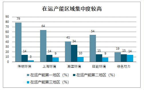 中金普华产业研究院数据显示:除绿色动力外,前三大在运产能地区(按省、直辖市或自治区划分)占现有在运产能的78~97%,集中程度较高。从在建及筹建产能来看,前三大区域的产能占比下降明显,公司业务范围正由区域省市为主向全国沿伸。