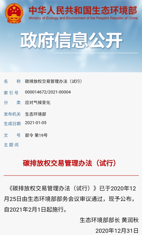 他说,根据国际经验,碳市场投入运行的标志是碳市场相关的法律法规、标准的发布,以及碳市场首个履约期的确定。首个履约期的开始日期被公认为碳市场投入运行的时间。