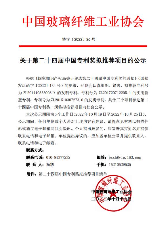 关于第二十四届中国专利奖拟推荐项目的公示