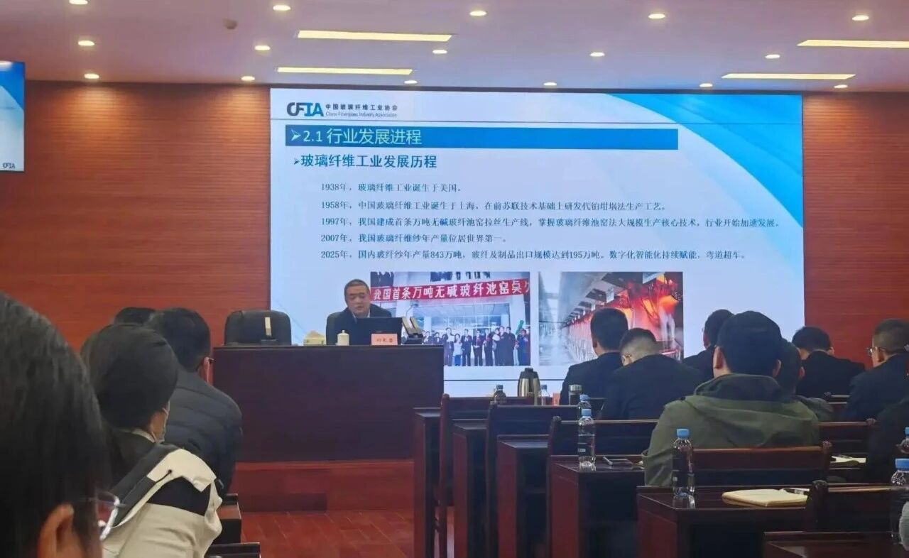 刘长雷秘书长作《我国玻璃纤维及制品产业发展概况与玻纤电子布发展解析》专题讲座,向大家详细介绍了当前我国及全球玻璃纤维及制品产业链发展概况,系统梳理了我国玻纤产业从起步到领跑全球的发展历程,指出当前行业正面对国际贸易环境变化、资源约束趋紧、产业结构转型等多重挑战,企业必须从“粗放跟随”向“创新领跑”转变,依靠科技创新培育壮大新质生产力。