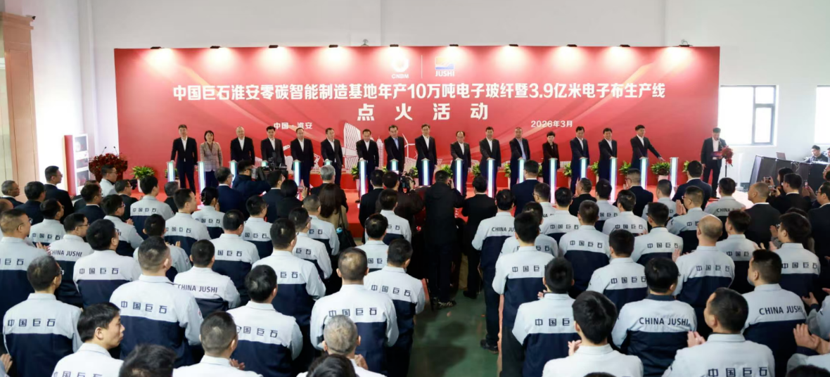 3月18日,中国巨石淮安零碳智能制造基地年产10万吨电子玻纤暨3.9亿米电子布生产线胜利点火。中国玻璃纤维工业协会秘书长刘长雷应邀出席活动并与中国建材集团有限公司党委书记、董事长周育先,振石控股集团党委书记、董事局主席张毓强,江苏省淮安市委书记史志军,市长顾坤,中国巨石集团董事长刘燕,党委书记、总经理杨国明等领导嘉宾共同为生产线点火。